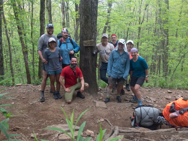 Trail Family. The hiker community is a huge part of what we love about hiking. We have had to say goodbye to some friends (Chadd) and section hikers who are done their hikes (Candace, John, David, and Nate). We have found a small group to hike with now: Brian, Michelle, and Runa. Here is a pic of us along with Nate before he went home.