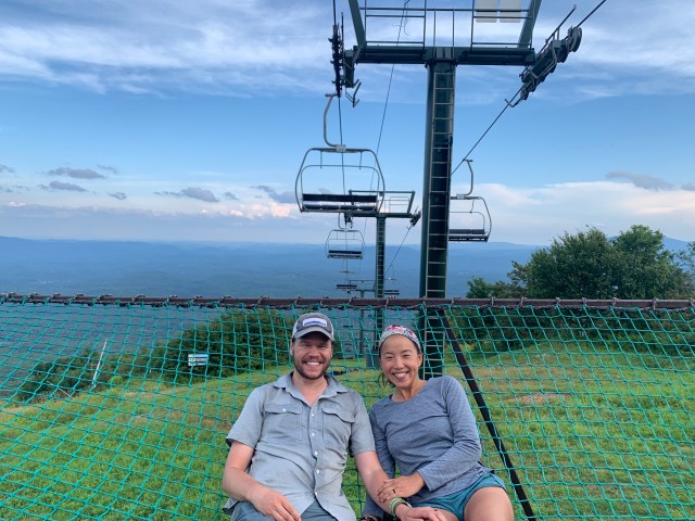 Maybe one of the most magical stays we have had was on Bromley Mountain, where they leave the ski patrol hut open to hikers. It’s a primitive cabin – no running water or electricity – but has the luxury of four walls, a door, and windows that open. It’s not usually safe to stay on a mountaintop without these amenities, and we were happy for the protection from the rain and thunderstorms. Additionally, Bromley has a chair lift with a safety net that makes for a cozy spot for taking in the first of the 360 degree views of the mountains. We listened to the thunderstorm that evening from the safety of the hut, and watched the sun rise and wash the mountains with its morning light. We left Bromley with a lot of anticipation for the mountains ahead of us.